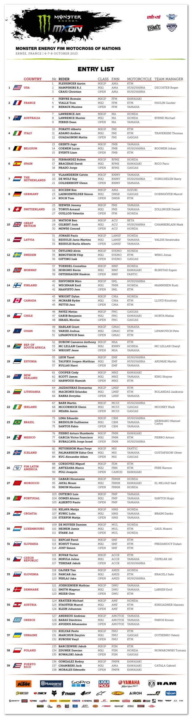 Ecco la lista ufficiale dei Teams che saranno al via del prossimo MXoN di Ernèe.